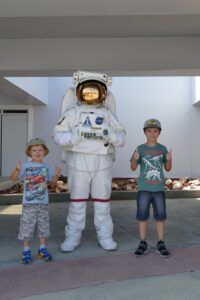 Die Kids toben sich noch etwas auf dem Spielplatz aus, wo sie andere schweizer Kinder treffen, während ich mich über die anstehende Marsmission informiere… Nach knapp 7h Space-Center haben wir dann genug gesehen und fahren wieder in unsere Suite zurück…