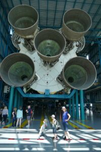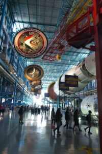 Der Bus stoppt nach 45 Minuten beim eigentliche «Museum», einem Gebäude das Nasa KT genannt wird. Im Inneren wird einem natürlich die USA als Weltraummacht zelebriert, aber nicht nur. Tatsächlich wird die Geschichte richtig erzählt und den Sowjets die ersten Lorbeeren zugestanden. Auch die amerikanischen Fehlschläge werden nicht verschwiegen. Man erlebt dann den Start der Apollo 8 Mission im authentischen Kontrollzentrum mit. Nach und nach überwiegt dann der amerikanische Patriotismus und der Stolz, es geschafft zu haben, den Mond zu umrunden und danach vor den Russen als erste zu betreten. Der Stolz gebührt ihnen zurecht, wenn man danach die Saturn V Rakete in voller Grösse in der nächsten Halle sieht.