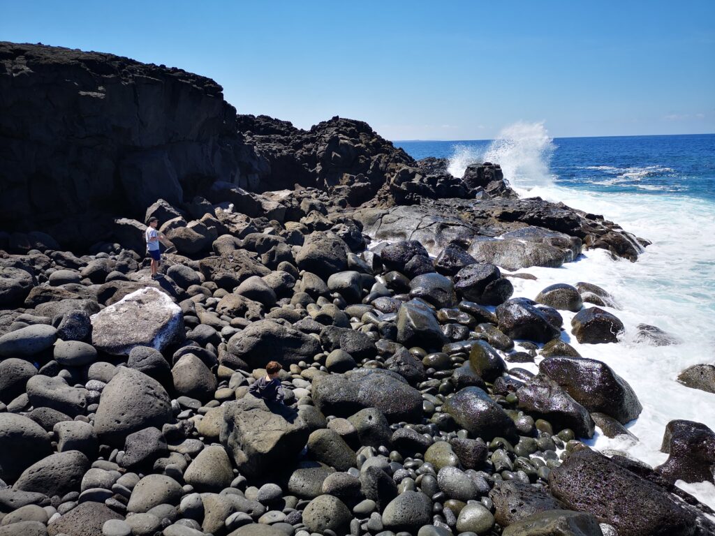 Leon kann dem Ganzen nicht so viel abgewinnen, wir anderen 3 sind fasziniert. Der Grund ist, dass Leon gerne noch länger am Strand mit den Wellen geblieben wäre. Wir vertrösten ihn, dass es am nächsten Ort in El Golfo noch höhere Wellen gäbe. Das stimmt zwar, aber die Klippen verhindern ein Baden… So fies…