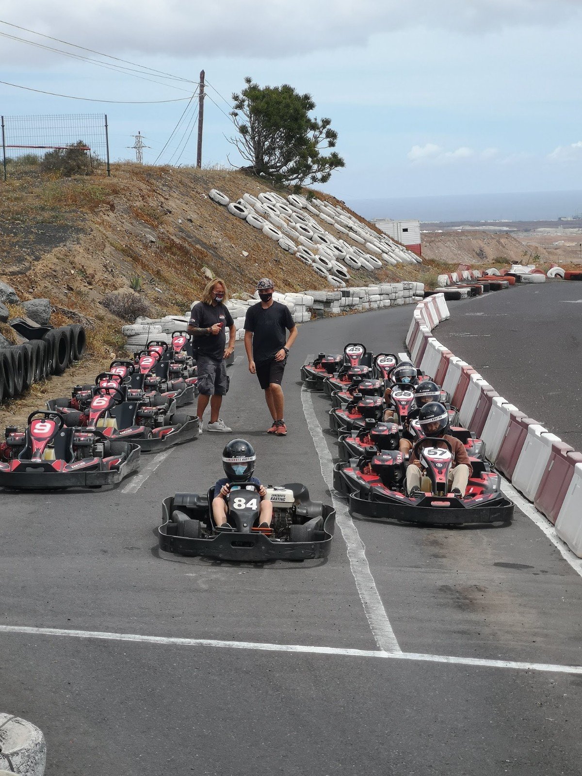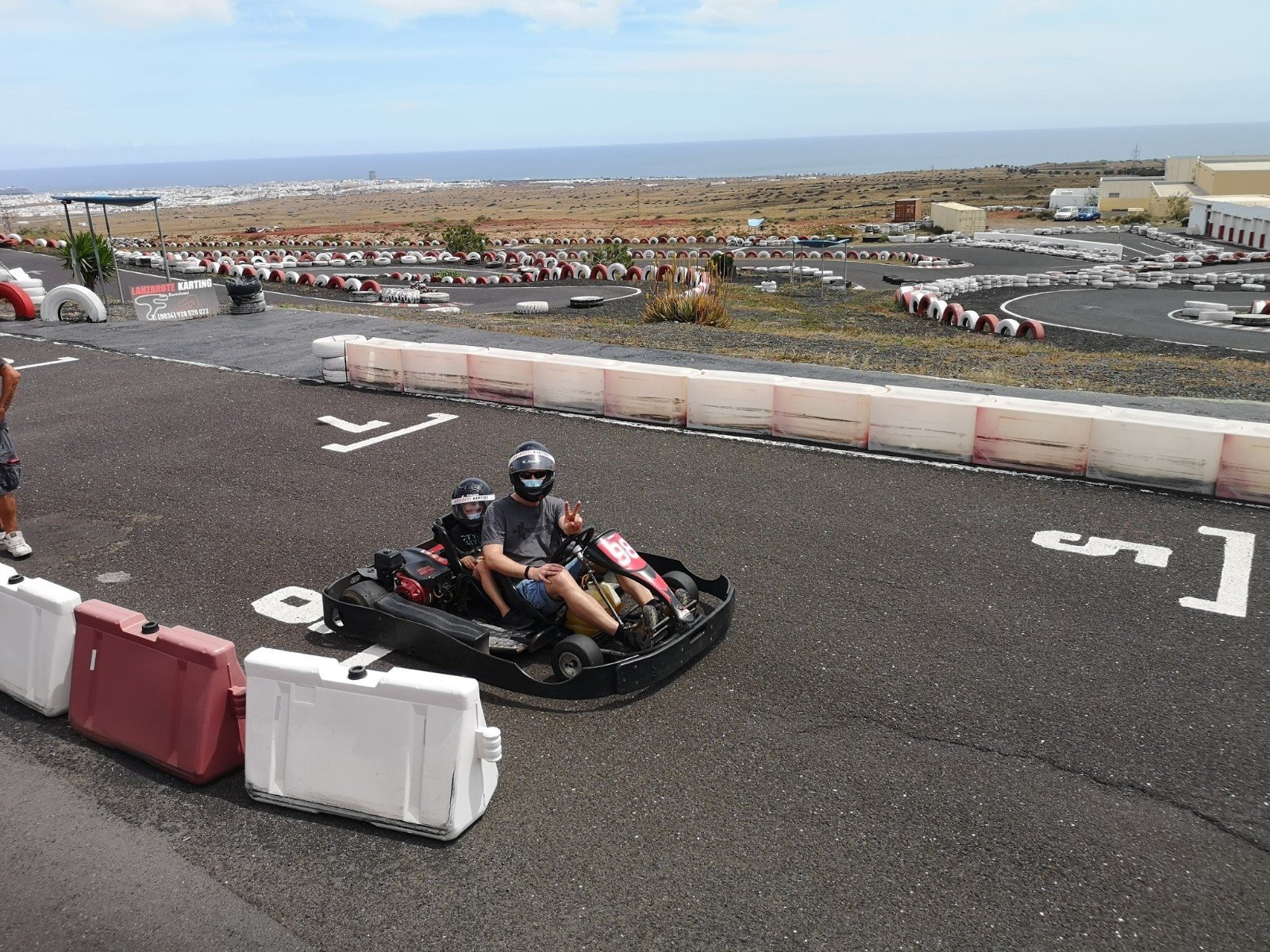 Anschliessend fahren wir zum Circuit de Lanzarote in der Nähe von San Bartolomé. Jan war schon zweimal bisher Kartfahren, ein Mal mit mir und ein Mal mit seinem Götti. Für Leon ist es das erste Mal. Er darf in einem Zweier-Kart mit mir mitfahren. Jan fährt alleine mit einem etwas weniger motorisierten Kart. Jan fährt zu Beginn seeeeehr vorsichtig, und braucht für eine Runde rund eine Minute, während Leon und ich in 35 Sekunden einmal rundherum flitzen.