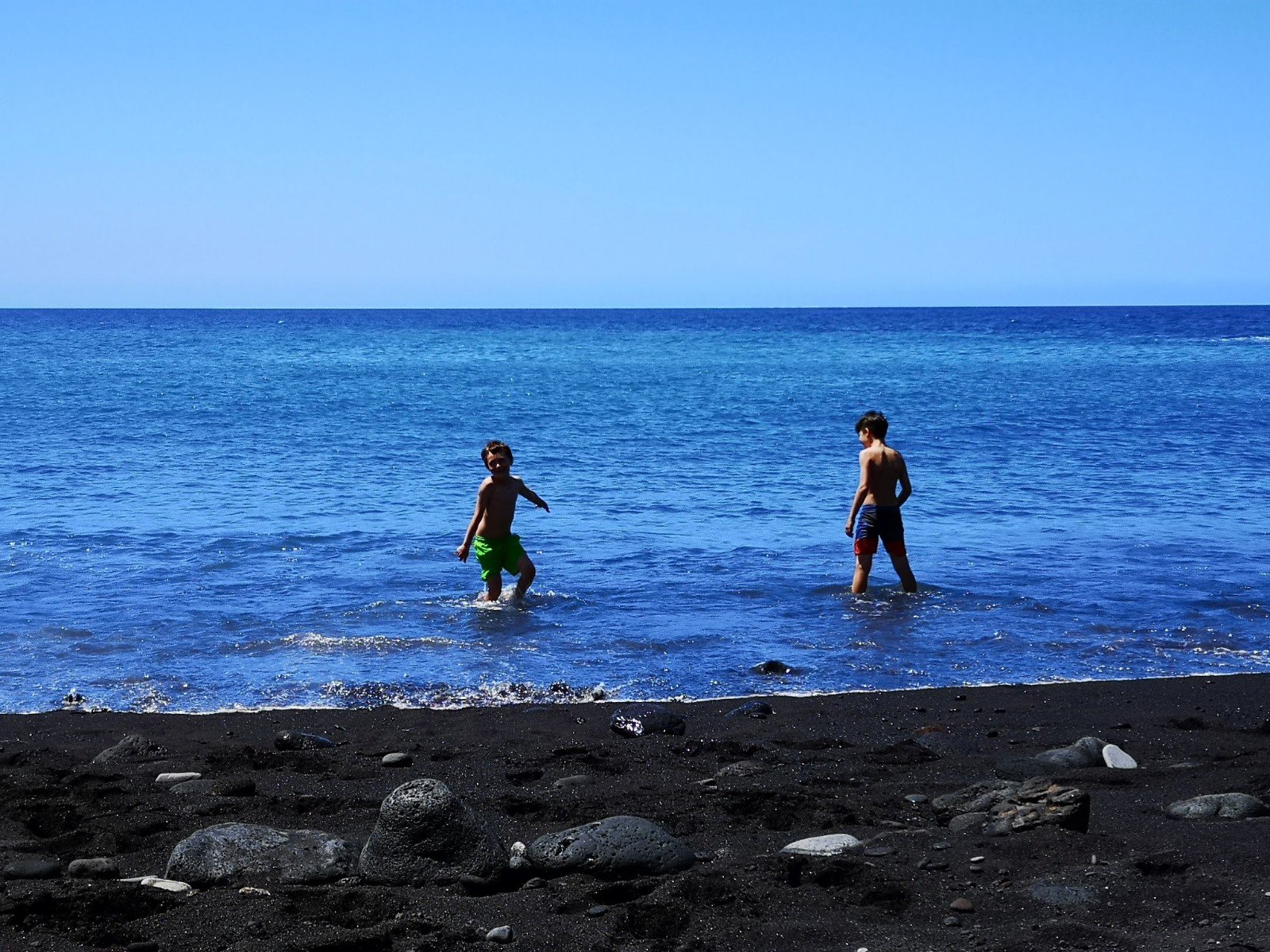 Der Kontrast zu Lanzarote ist enorm. Hier im Nordwesten der Insel scheint es aufgrund der luvseitig den Teide anströmenden Passatwinde genĂŒgend Niederschlag zu geben fĂŒr ĂŒppige Vegetation. Wir fahren also entlang von grĂŒnen BerghĂ€ngen, Bananenplantagen und farbigen, blĂŒhenden BĂŒschen. Die Temperatur liegt hier bei angenehmen 27°C. Wir fahren anschliessend zum Playa del Castillo, damit sich Jan und Leon etwas austoben können nach der Aufregung des Fluges und dem lĂ€ngeren Sitzen… Gleich am Strand steht auch das Castello de San Felipe aus dem 16. Jh.