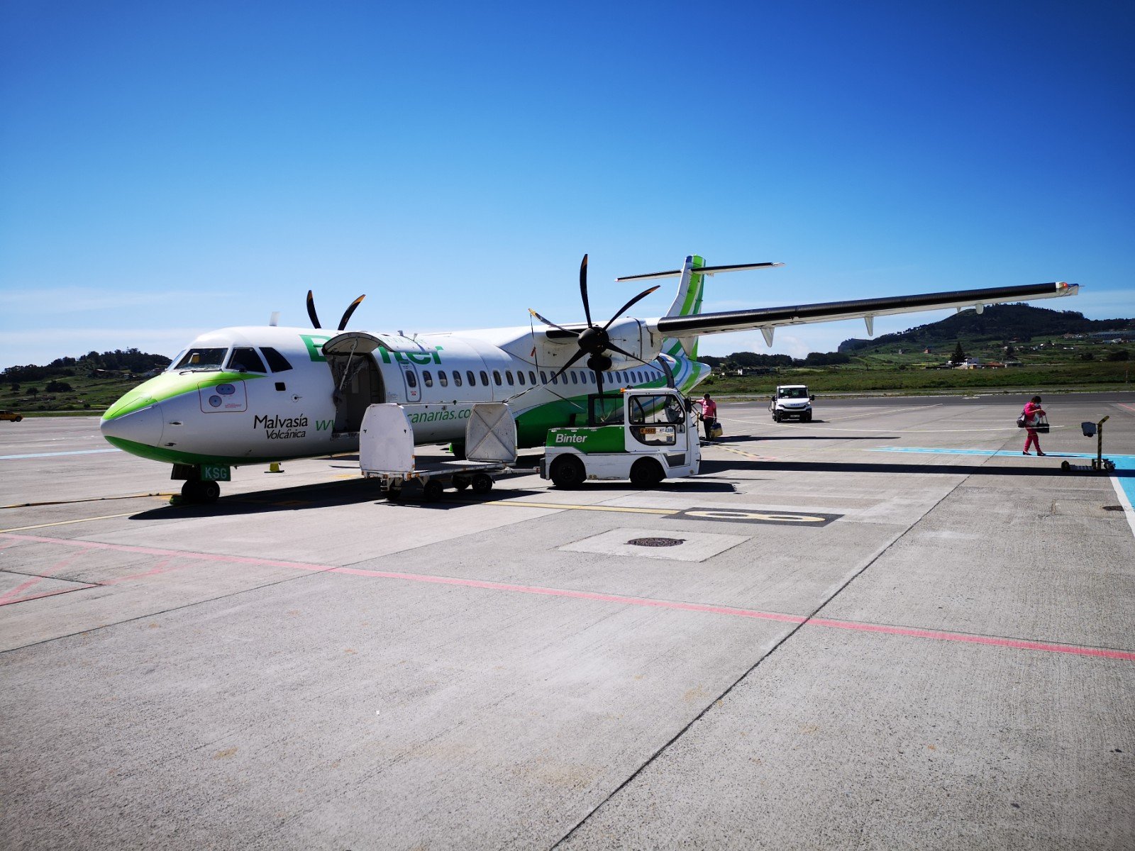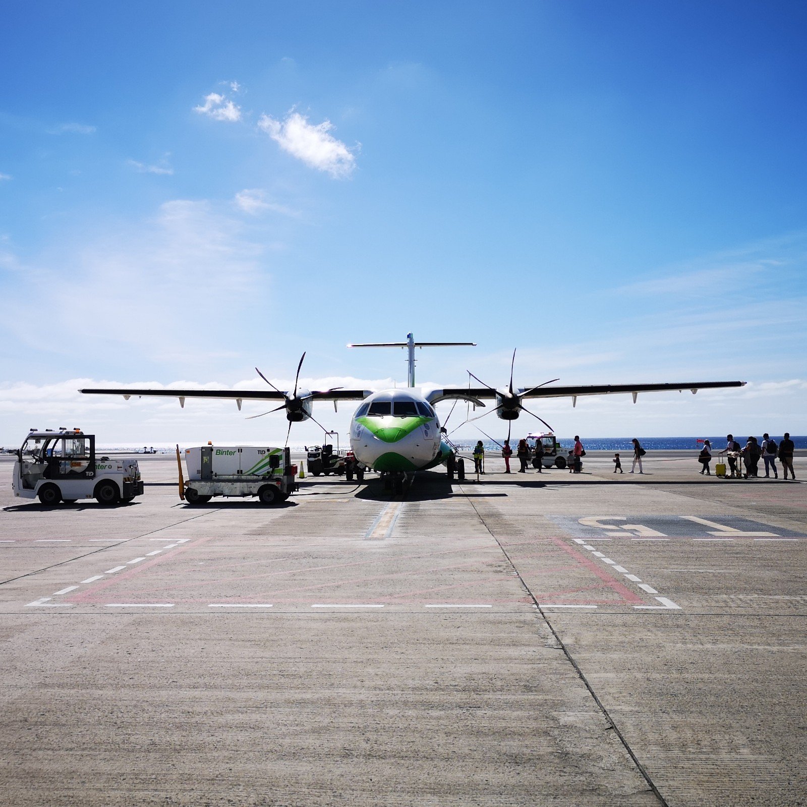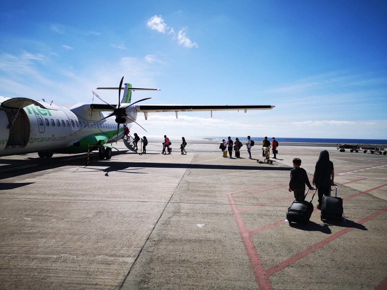 Heute steigt das Adrenalin ab dem Morgenessen an, da unser Wechsel von Lanzarote nach Teneriffa ansteht. Wir fliegen mit Binter-Airlines von Arrecife nach San CristĂłbal de La Laguna auf Teneriffa. Dass sich Teneriffa auf Pandemie-Stufe 3 befindet (im Gegensatz zu Lanzarote auf Stufe 2), merkt man am Flughafen schon an den hohen Sicherheitsanforderungen. Warum Anja beim Check die Schuhe ausziehen muss, wissen wir aber immer noch nicht. đł Auf jeden Fall lĂ€uft alles problemlos und zĂŒgig, so dass das Flugzeug, eine zweimotorige Propellermaschine, exakt um 11.20 Uhr abhebt. Nur 40 Minuten spĂ€ter setzen wir zur Landung auf Teneriffa an. (eines der folgenden Fotos zeigt noch unseren treuen Opel Zafira).