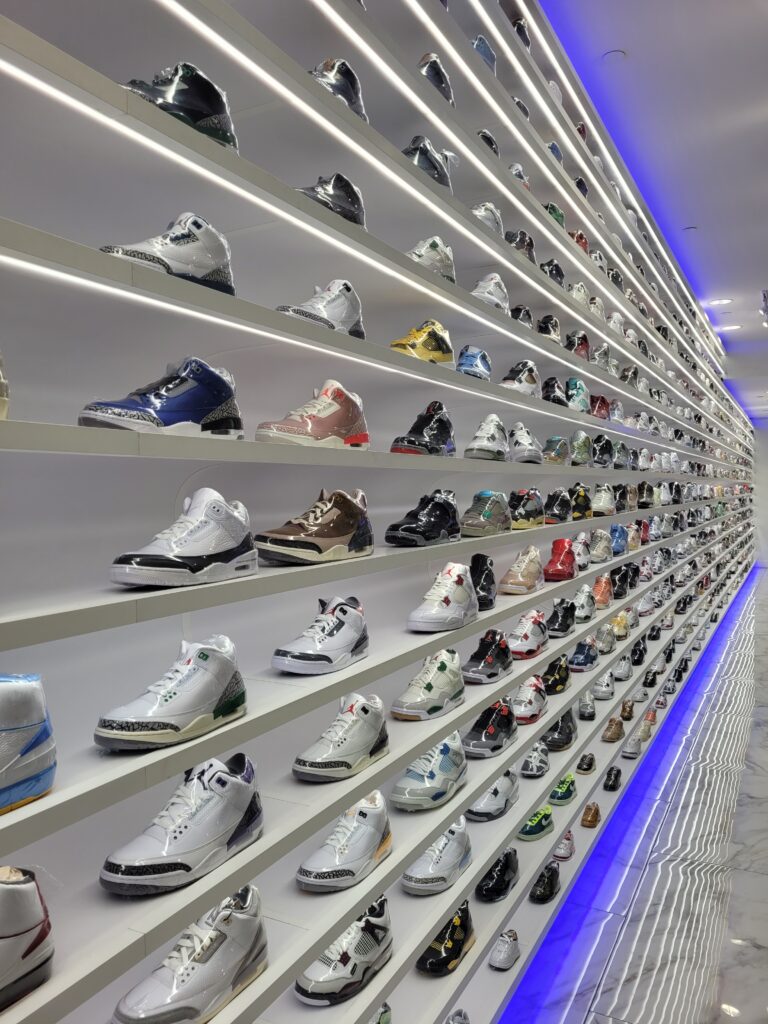 Im Outlet decken wir uns mit Schuhen, T-Shirts, Hosen und so weiter ein, um die Herbstkollektion im Hause Handschin zu ergänzen.