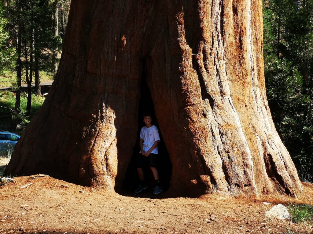 Die Strasse windet sich endlos empor, bis wir schliesslich vor den riesigen Mammutbäumen stehen.