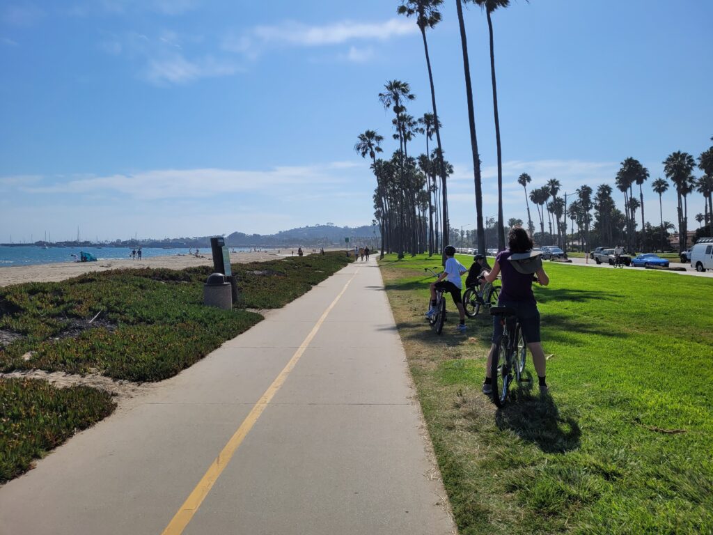 Santa Barbara wurde ursprünglich von spanischen Missionaren gegründet. Das spanisch-mexikanische Flair ist bis heute erhalten geblieben und zeigt sich im Stil der Häuser, den kunstvoll geschwungenen Verzierungen und sogar in den spanischen Menükarten der Restaurants. Für den Ausblick vom Kirchturm sind wir um 17 Uhr leider zu spät, daher entscheiden wir uns für ein frühes Abendessen. Tacos, Tortillas und Enchilladas passen da am besten. Ich gönne mir einen riesigen Frozen- Margherita, worauf Jan besorgt ist, ob ich es mit dem Velo noch zurück zum Hotel schaffe. Klar doch!